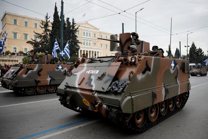 Des véhicules blindés lors du défilé militaire marquant le jour de l’indépendance de la Grèce,à Athènes,le 25 mars 2025. LOUIZA VRADI / REUTERS La République hellénique n’a pas attendu la guerre en Ukraine ni le plan de défense européen pour investir massivement dans ses forces armées. Mercredi 2 avril,elle a confirmé cette préférence pour la dépense militaire. C’est en effet,ce jour,que le premier ministre conservateur,Kyriakos Mitsotakis,et son ministre des armées,Nikos Dendias,ont présenté devant le Parlement hellénique,leur ambitieuse réforme de la défense nationale,qui prend forme à travers un programme d’investissement de 25 milliards d’euros sur douze ans (2025-2036).