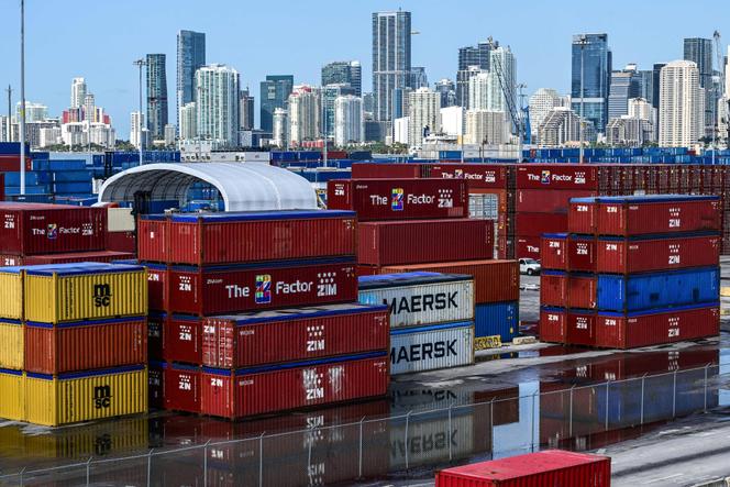 Dans le port de Miami (Floride),le 9 avril 2025. GIORGIO VIERA / AFP Donald Trump a fini par céder aux pressions qui se multipliaient. Marchés financiers qui dévissaient,colère des milliardaires qui le soutenaient,critiques parmi les élus républicains… Mercredi 9 avril,le président américain a annoncé une suspension de quatre-vingt-dix jours des droits de douane réciproques,dont ceux de 20 % sur les produits européens. Il continue néanmoins à imposer à 10 % toutes les importations aux Etats-Unis – quatre fois plus qu’avant – et fait une exception pour la Chine,qu’il annonce vouloir taxer à 125 %.